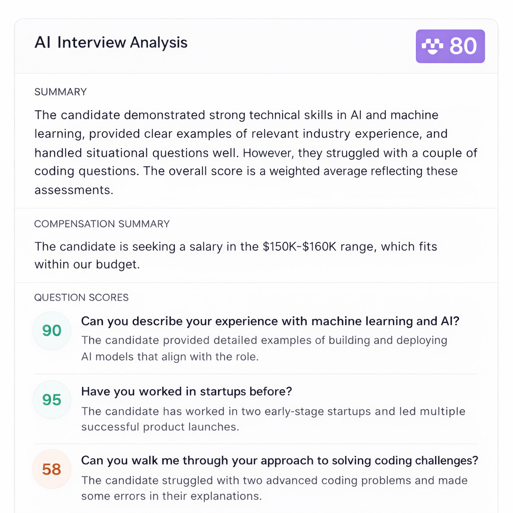 This isn’t just transcription. It’s a system that helps teams evaluate consistently, compare fairly, and move faster with confidence.