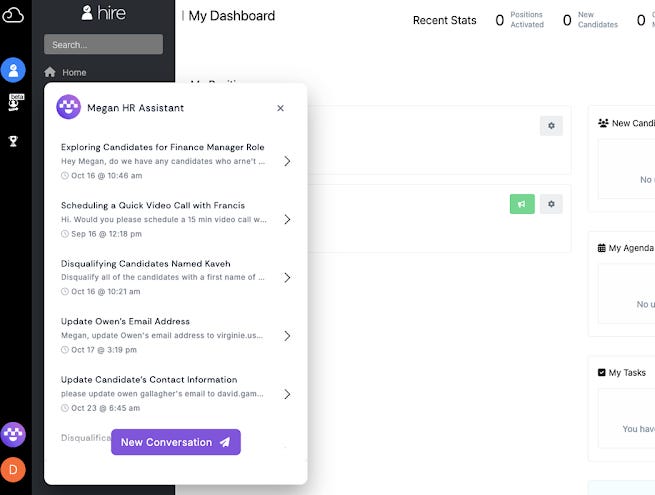 Megan always knows the role, the candidate, the stage, and the history. You never have to re-explain context or switch systems to get things done.